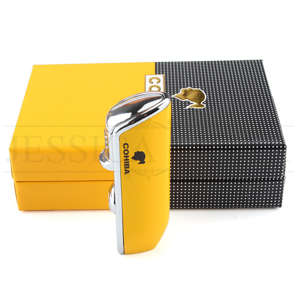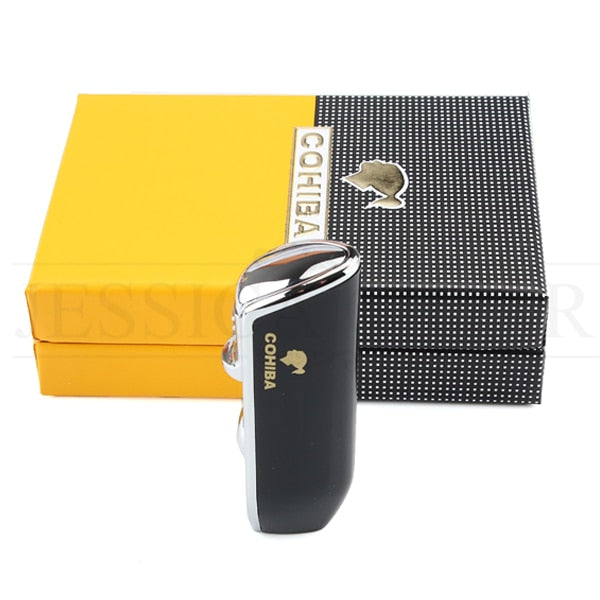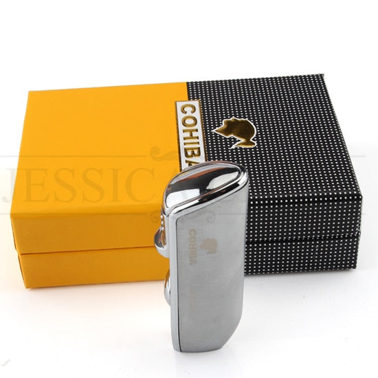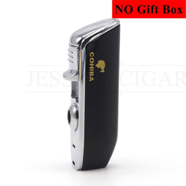 COHIBA Metal Windproof Mini Pocket Cigar Lighter 3 Jet Blue Flame Torch Cigarette Lighters With Cigar Punch Gift Box